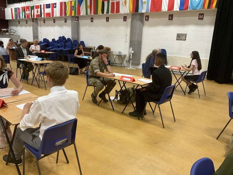 BackOn Friday 11 July Cheney Year 10 students undertook a mock interview. Despite the 30 degree heat, students came into school in professional dress and they looked amazing. Each student had a ten-minute interview with one of more than 30 'outsiders' who had given up their day to come into Cheney to put our students to the test. Where possible, we tried to match up the interviewer's career with the career aspirations of our students. The day went extremely well and the interviewers were really impressed by our Year 10s. All the students who were interviewed will receive written feedback this week.