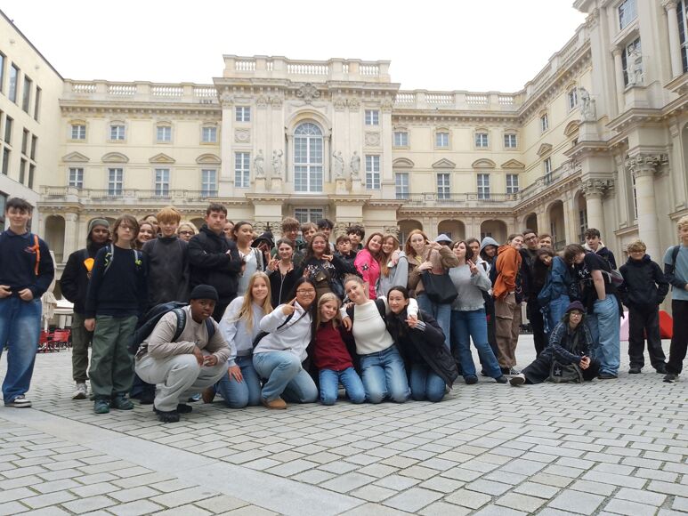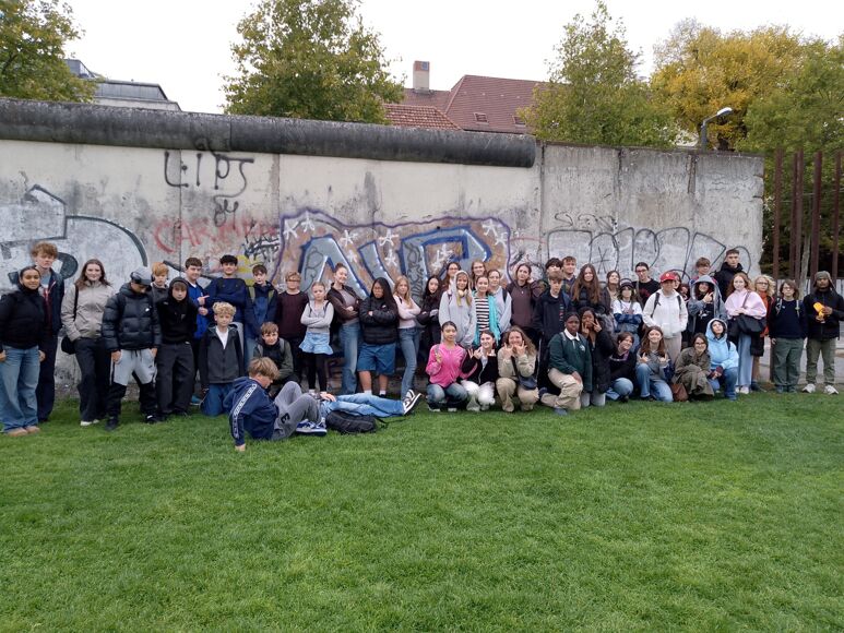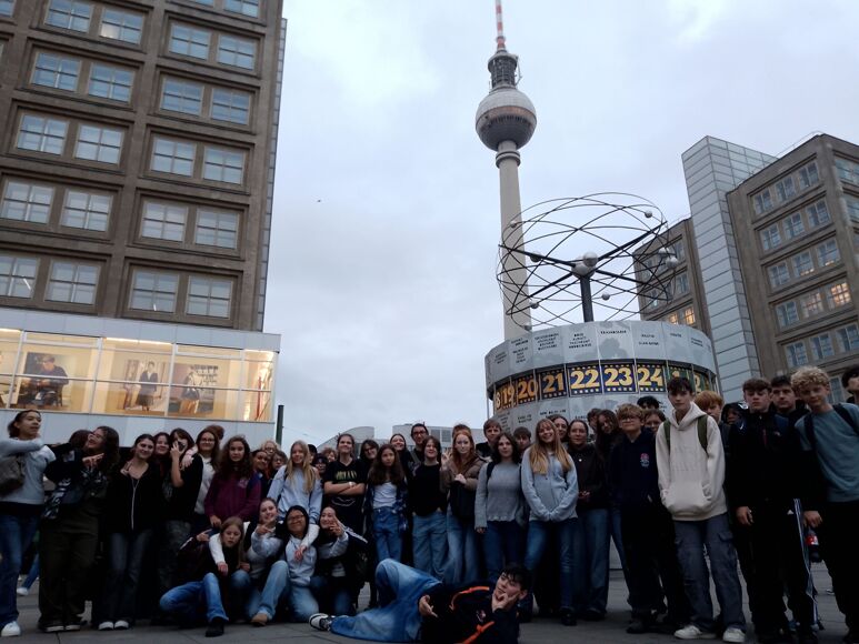 BackOn Thursday 9th October 51 Cheney students flew to Berlin. 31 were Year 10 students studying history and the others all study German in years nine, ten or twelve. We woke up really early (3am!!) but it was worth it. We got the plane from Heathrow and it landed in Berlin around 10 am. The German students then went to our partner school the Max Planck Gymnasium where we got a warm welcome as we were greeted with traditional German snacks. The history students went to their youth hostel and then explored Alexanderplatz which was very close to where we stayed.