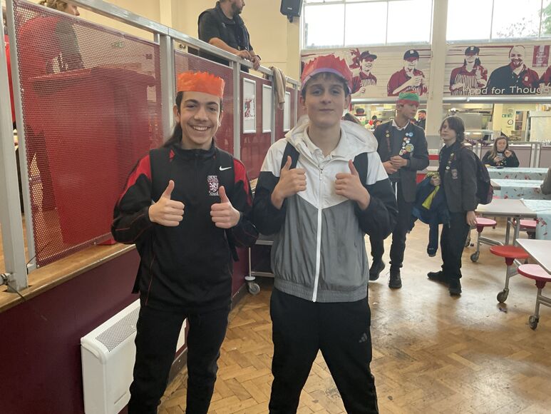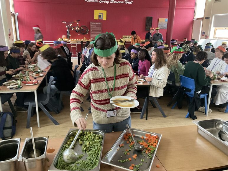 BackWe've been getting ready for the festive season here at school with our Christmas lunches cooked up in our canteen - for 450 on Tuesday and 350 yesterday! Students were greeted by Sixth Formers dressed up as a snowman, Christmas pudding and a turkey, passing them their Christmas cracker and cutlery before being dished up a vegan or chicken roast dinner with all the trimmings. And all of this with Christmas tunes such as 'Last Christmas' playing in the background, and staff elves busy keeping everything going! It was a delight for the senses and a lovely celebratory occasion for the end of term.