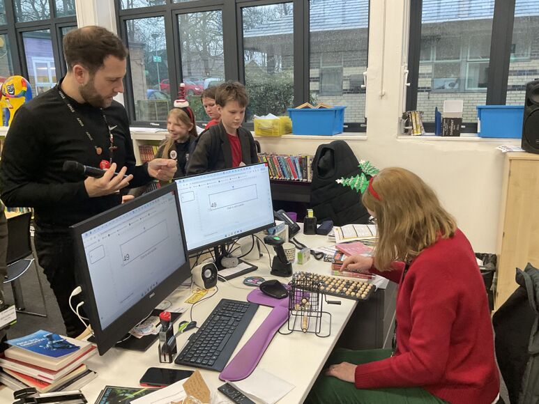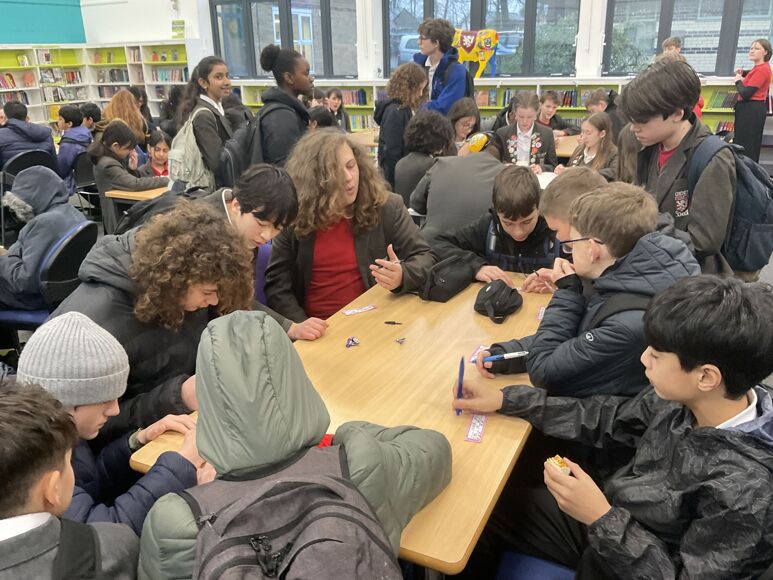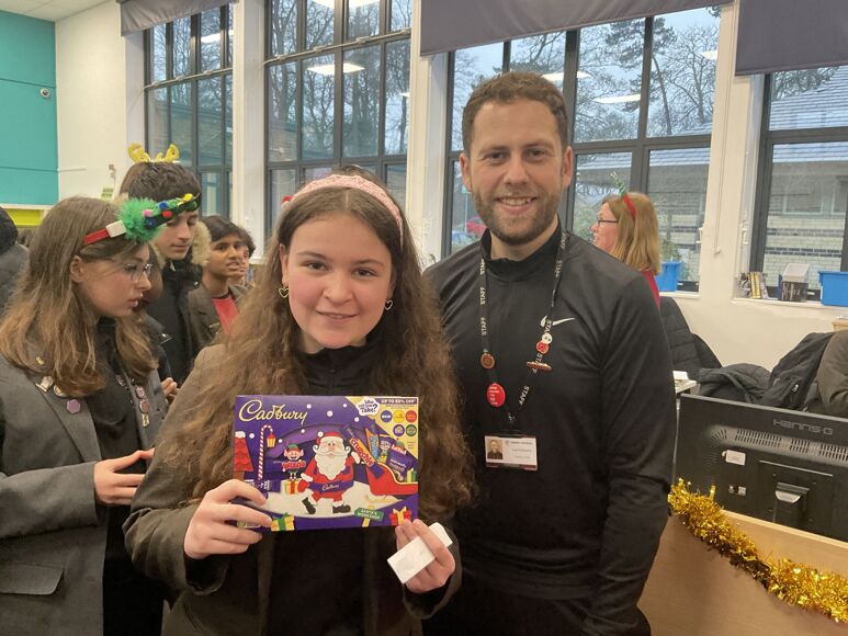 Today in the library at break-time, Mr Fieldwick played bingo caller and Mrs Fenton checked the numbers for the winner of the full house, Emma in year 8 - who went away with a chocolate selection box!