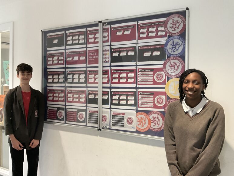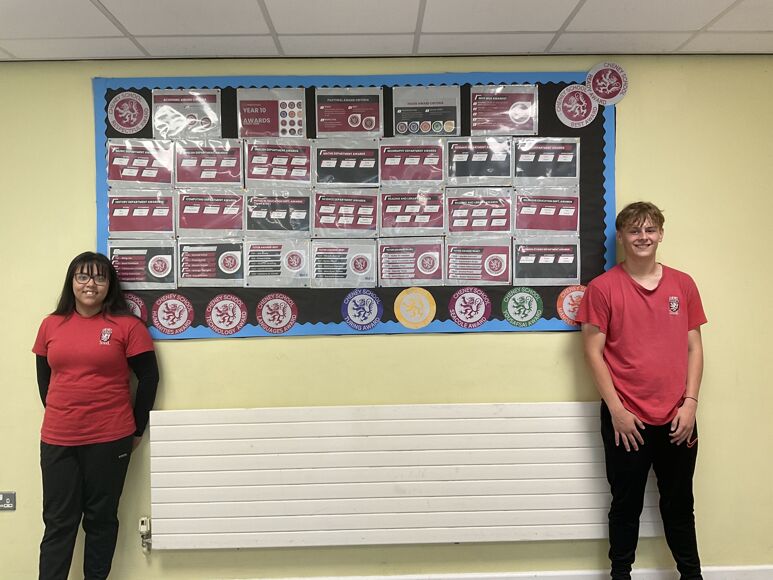 They are awarded a pin badge to wear on their blazer at the prize giving assembly which happens each term and their name is displayed on the celebration notice boards in each year group area at school.
