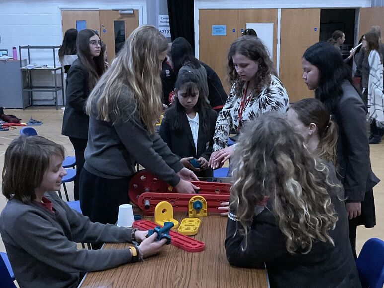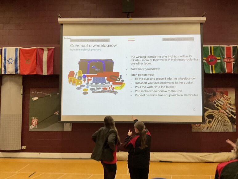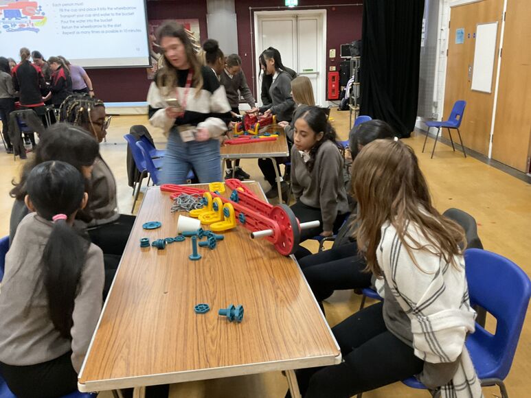 BackLast Tuesday 3rd December, year 8 girls got stuck into a fun practical session in the hall, designing and constructing a wheelbarrow in teams, with which they then had to race up and down the hall, carrying a cup of water. The team with the most water in the bucket at the end won!