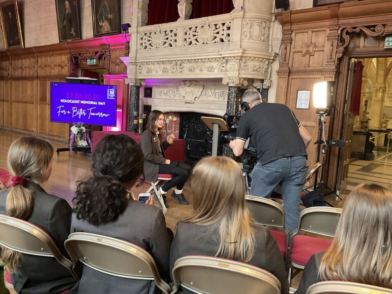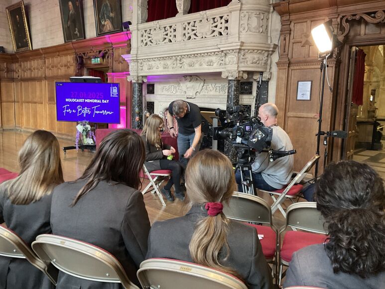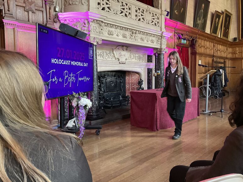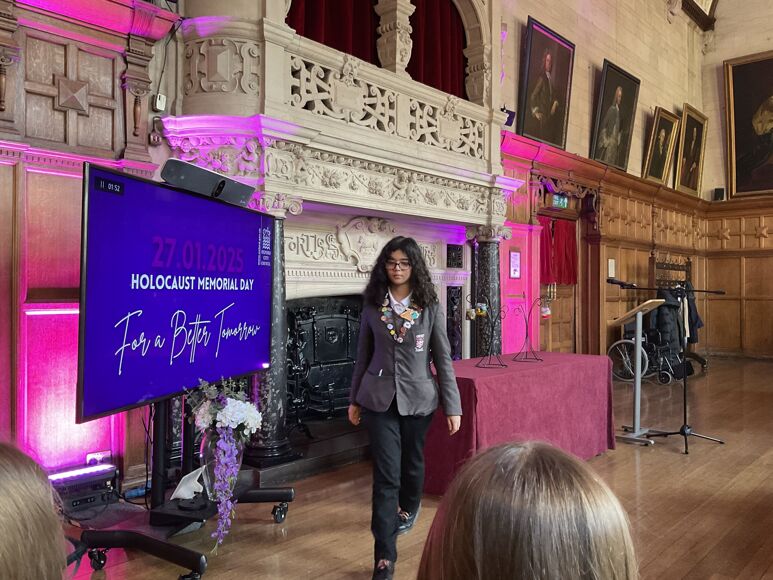 ‘Benedictus’ was played as students, Jess, Nadia, Elin, Anna and Rosa added their candleholders to the display at the front of the Assembly Room yesterday, one by one with the other speakers at the event, including Anneliese Dodds MP, Monawar Hussain from The Oxford Foundation and Reverend Anthony Buckley, City Rector. It was a very moving service as everyone was silent listening to the emotional ‘Benedictus’ and reflecting on one of the darkest chapters of human history.