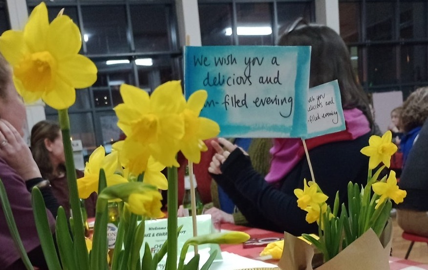 BackOn Saturday 1st March the school canteen was transformed by Cheney Friends with tablecloths, candles and pots filled with bright daffodils wishing us a delicious and fun-filled evening for the Curry and Quiz night.