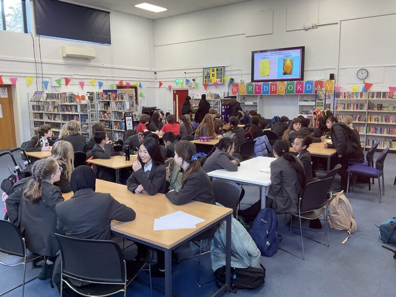 Students were encouraged to borrow a book for the Drop Everything and Read events by taking part in the lucky dip. Each student who borrowed a book throughout the week won house points, a much sought after golden ticket or a £5 book voucher for a lucky few.